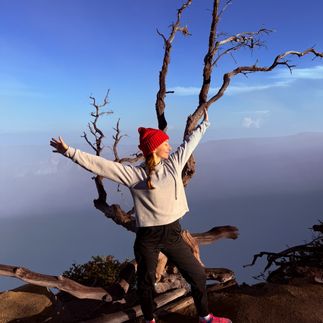 На вершине встречаем рассвет. Солнце поднимается над изумрудным кислотным озером, и в этот момент что-то внутри меняется. Это восхождение - метафора пути к своим целям и желаниям. Мы проходим его вместе, в тишине, каждая со своими мыслями. Здесь рождаются инсайты. Здесь многое становится ясным.