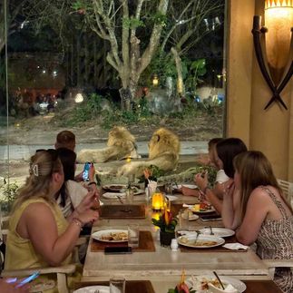 Вас ждут выступления слонов и тигров, яркое национальное шоу Агунг и катание на слонах. Буквально на расстоянии вытянутой руки перед нами окажутся невозмутимые носороги, увальни-бегемоты, пятнистые олени, величественные львы, полосатые белые тигры и комодские вараны, а после отдохнете за чашечкой кофе. На территории парка есть прекрасные кафе и рестораны, где мы сможем пообедать, наблюдая за жизнью животных.