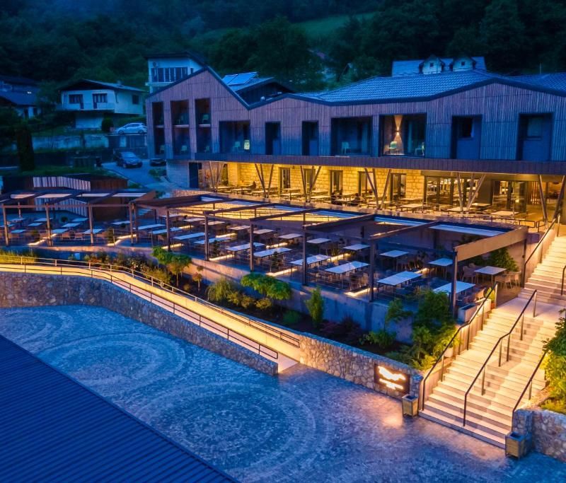 Сегодня выезжаем в Национальный парк Уна с короткой остановкой у памятника югославского брутализма в Бавско — фото и легкий кофе перед дорогой. По прибытию обедаем и выбираем: трёхчасовой рафтинг по бурной Уне(доплата 75 марок35 евро) или отдых в ресорте. После — несложный и приятный треккинг к знаковому водопаду Штрбачки Бук, прогуливаемся по деревянным мосткам, фотографируем каскады сверху и снизу, а желающие могут окунуться в маленьких озёрах рядом с водопадом. Прогулка продолжается через Мартинов Брод и смотровую площадку с панорамой на изгибы реки, а затем возвращаемся в Park Una Resort. Вечером — заселение, ужин и отдых после насыщенного дня.