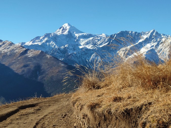 Спускаемся по серпантину вниз. Делаем фотоостановки. Наслаждаемся красотой гор и скалистых вершин Гайкомд, Кулейлам, др.. Рассматриваем Боевые башни Кхарт, Лейми, Баркинхой.