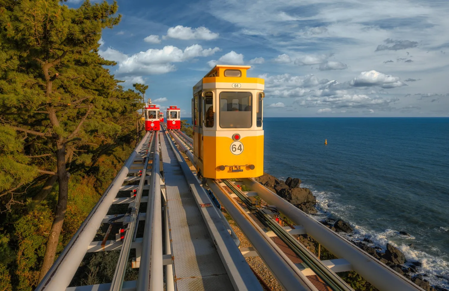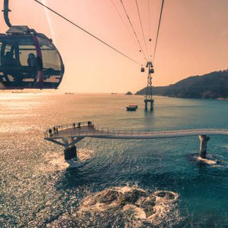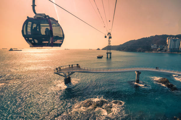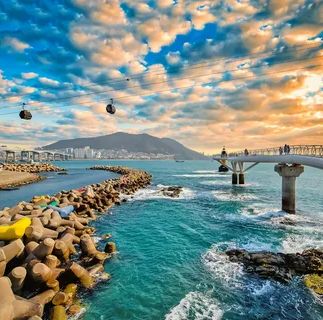 Затем едем кататься на подвесной тропой Songdo Skywalk — морская канатная дорога, с кабинками со стеклянным полом. Можно прокатиться, отдохнуть и полюбоваться прекрасными видами на морские пейзажи Сондо. С высоты открываются прекрасные виды на море, на город и на пляж Сонгдо.