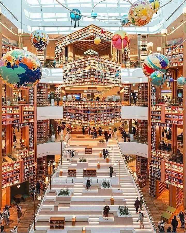 Далее мы возвращаемся в Сеул, но по пути обязательно заедем в Сувон, чтобы постеить Starfield Suwon— гигантский торговый центр, на нескольких этажах которого расположена модная локация-библиотека, похожая на библиотеку в Coex, но больше и интереснее. В основном все видео в интернете про Starfield снимают именно здесь.