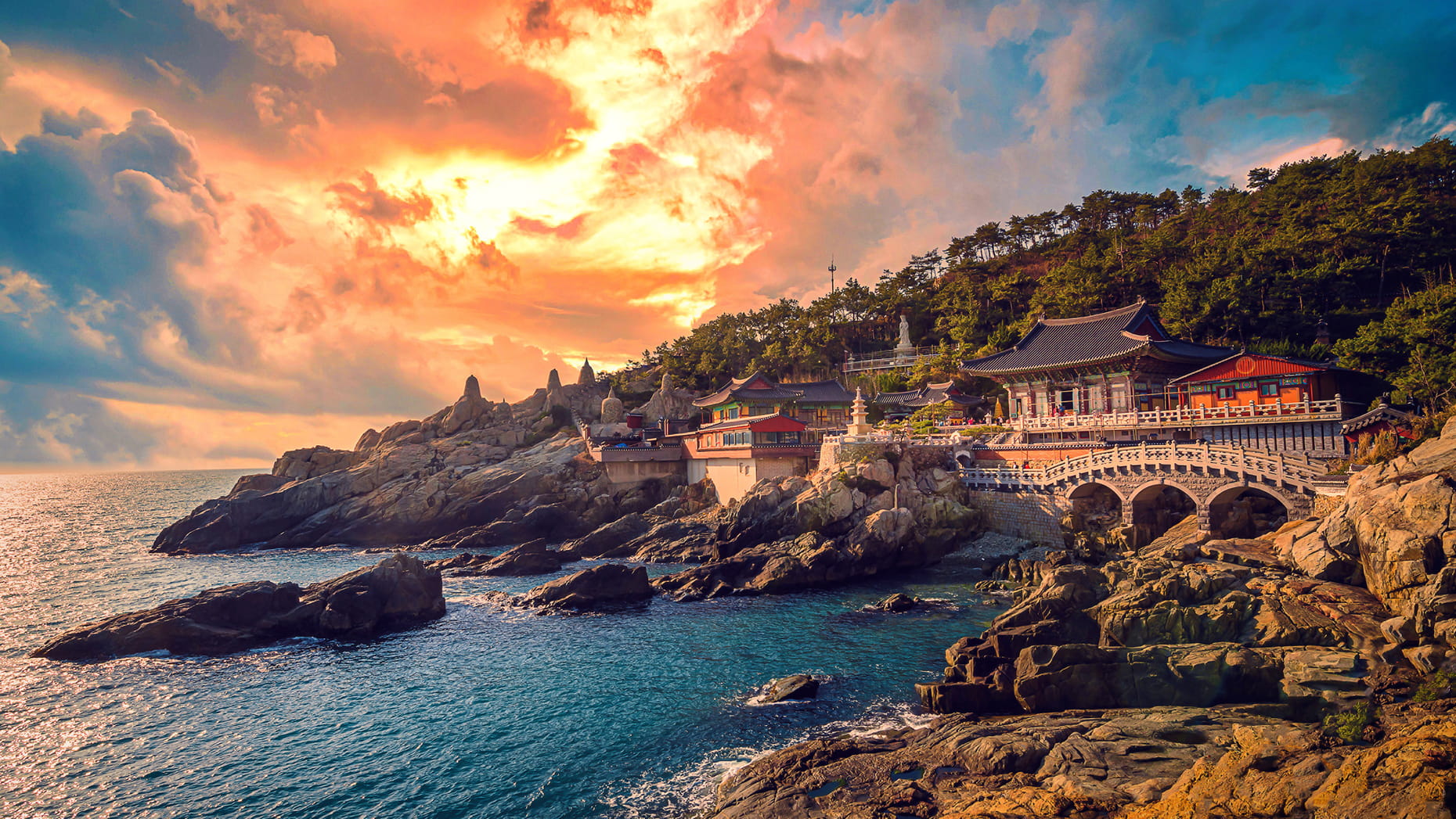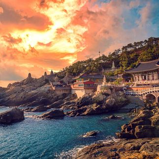 Сначала мы отправимся в Храм Хэдон Ёнгунса — один из самых красивых и необычных храмов Кореи. Он расположен прямо на побережье Восточного моря, среди скал, о которые разбиваются волны. У него даже есть своего рода официальный лозунг храм, который исполняет хотя бы одно желание. Корейцы со всей страны приезжают сюда, чтобы исполнить заветную мечту.Мы тоже пройдем по драконьему пути и загадаем свои желания. А по пути будем наслаждаться роскошными видами: морскими пейзажами, величественными зданиями, атмосферой исторических фильмов.
