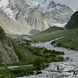 Сегодня нас ждут виды Северной стены с другого ракурса! Идем в трек, ведущий к Северному массиву ледника Мижгири. Справа увидим скалистуцю вершину Брно (4110 м), а слева открываются виды на уже знакомое нам ущелье Укю, и хижина альпинистов отсюда выглядит как крохотная красная точка. Устроим пикник на большой зеленой поляне с потрясающими видами. Спустимся вниз на финальный ужин в горах.