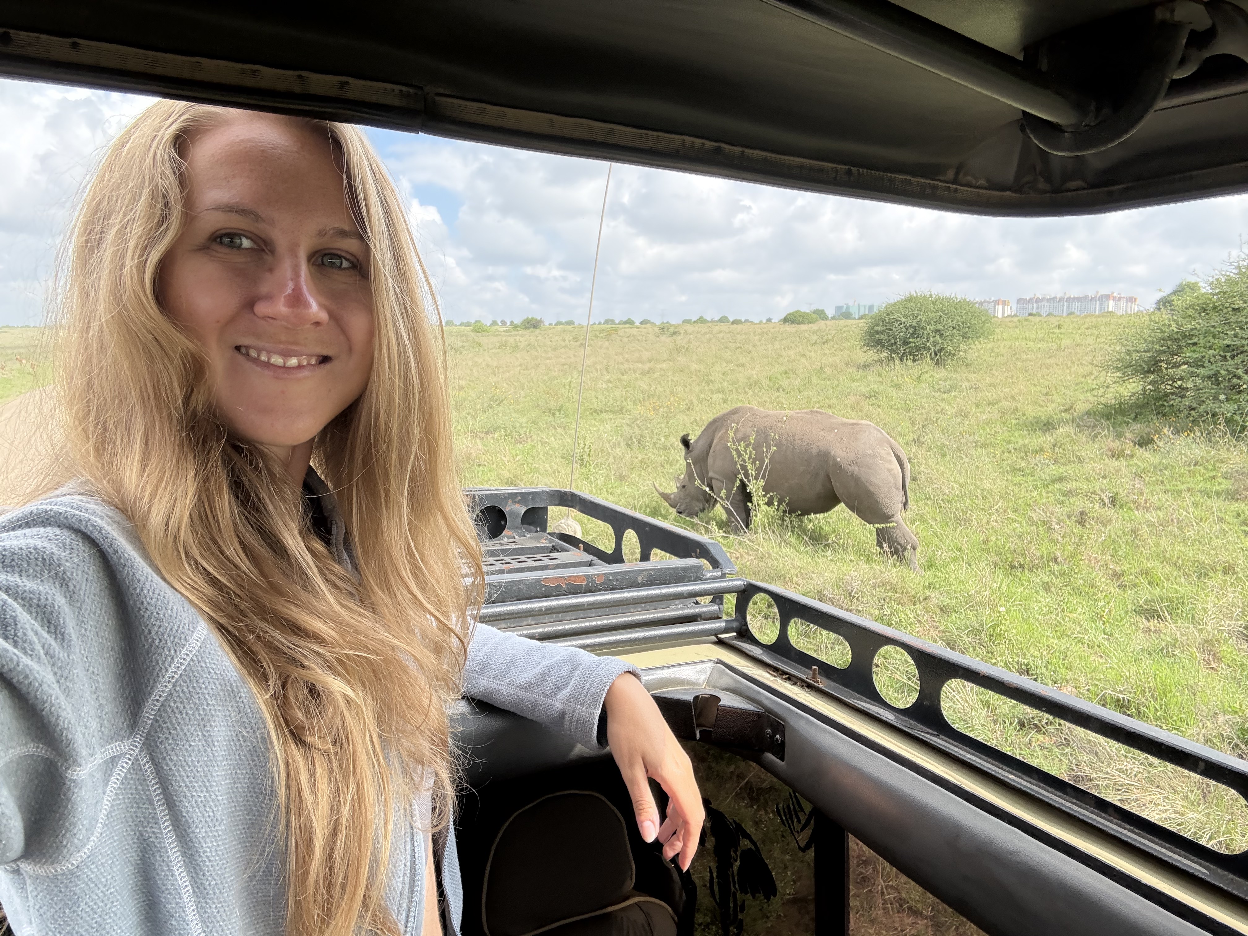 Наш первый нацпарк - Найроби, и это единственный в стране парк, расположенный в черте города. Здесь, на фоне небоскребов, гуляют зебры, жирафы и львы, а главные герои парка, белые и черные носороги, неторопливо проходят рядом с вашим джипом.