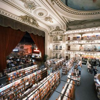 Затем заглянем в уникальный книжный магазин, расположенный в бывшем театре, — одно из самых атмосферных мест города. Высокие балконы, сцена и мягкий свет создают по-настоящему необычную атмосферу, в которой хочется задержаться.