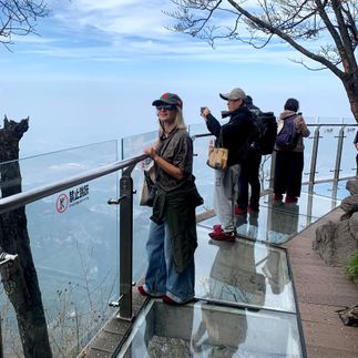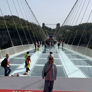 Под ним ущелье глубиной 300 метров. Мост установил множество мировых рекордов для стеклянных мостов.