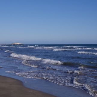 На обед-перекус остановимся на галечном пляже. Отдохнём и поплаваем. Совсем скоро дойдём до скалы, у которой и находится кемпинг. Здесь тянется на 2 км шикарный песчаный пляж. Искупаемся ещё раз!