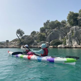 На каяках дойдём до затонувшего города Кекова — строения будут прямо под нами. Догребём до крепости Симена, высадимся на берег и прогуляемся до места, откуда открывается впечатляющая панорама всей бухты. Желающие смогут пообедать в кафе.