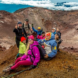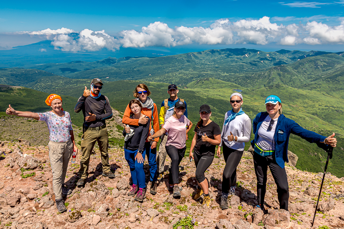 После триумфального восхождения и большой фотосессии на вершине, мы начнем спуск обратно к нашему базовому лагерю, где состоится торжественное вручение сертификатов о восхождении на вулкан Тятя.