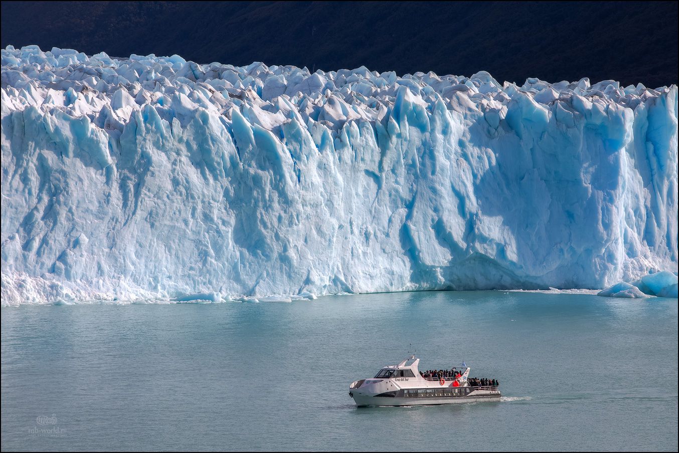 Известно, что цвет ледника способен рассказать о его возрасте: чем он старше, тем он обладает более насыщенным синим цветом, и чем светлее цвет тем моложе ледник. Перито Морено 30 000 лет, а насыщенность его цвета вы сможете оценить сами. По ледяной воде озера курсируют туристические суда, на одном из которых, желающие могут опционально подойти к леднику с близкого расстояния и еще сильнее ощутить всю мощь этого ледяного гиганта.