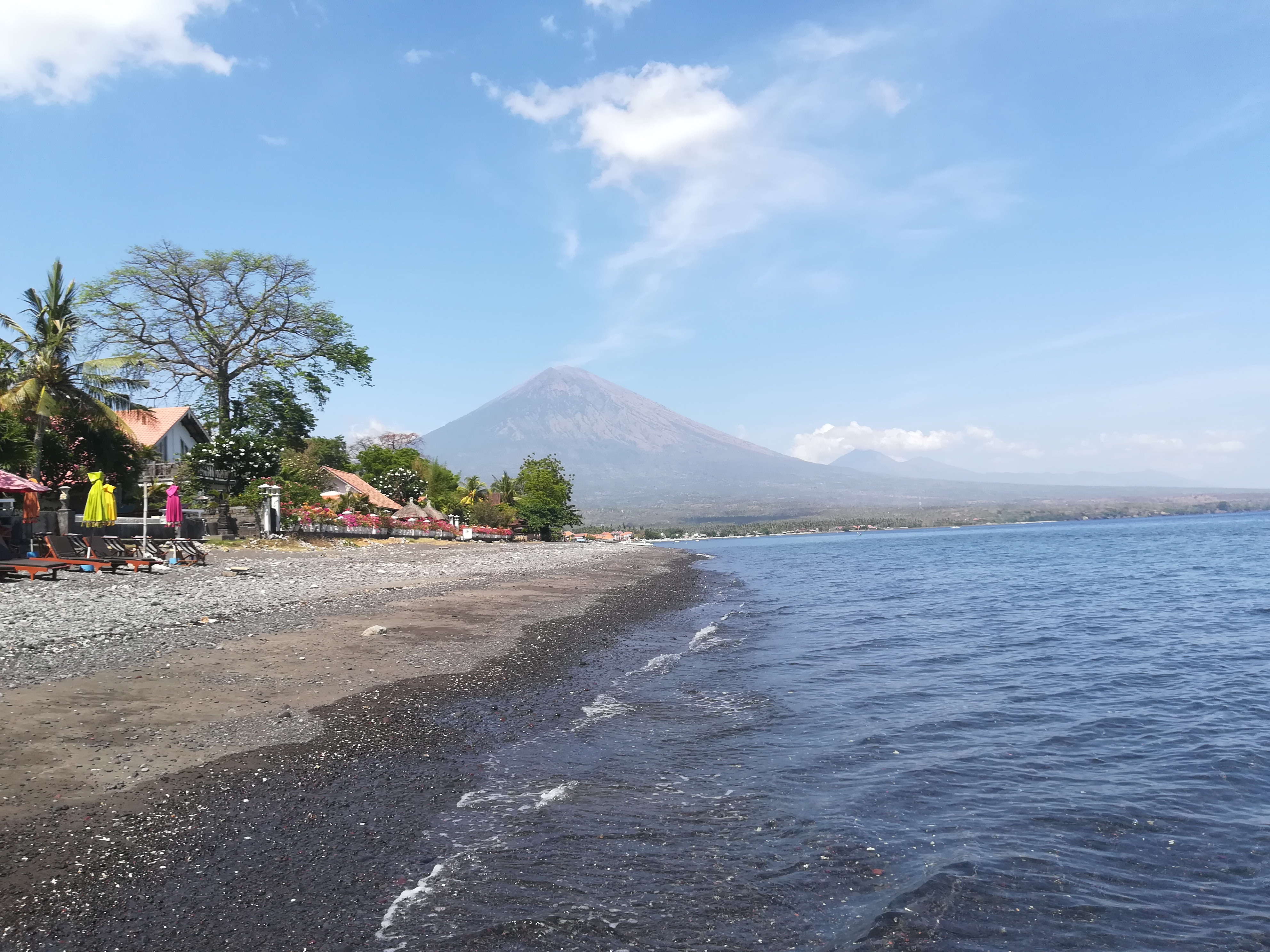 Представляет собой длинную улицу, на которой расположены кафе, отели. Пляжи в основном покрыты черным вулканическим песком.