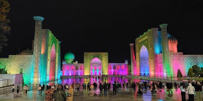 -Ознакомительная прогулка по вечернему Самарканду (Регистан в ночном освещении)