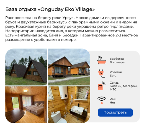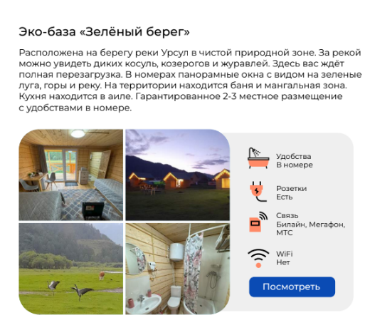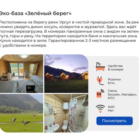 - Проживание на комфортных турбазах в живописных местах