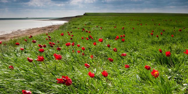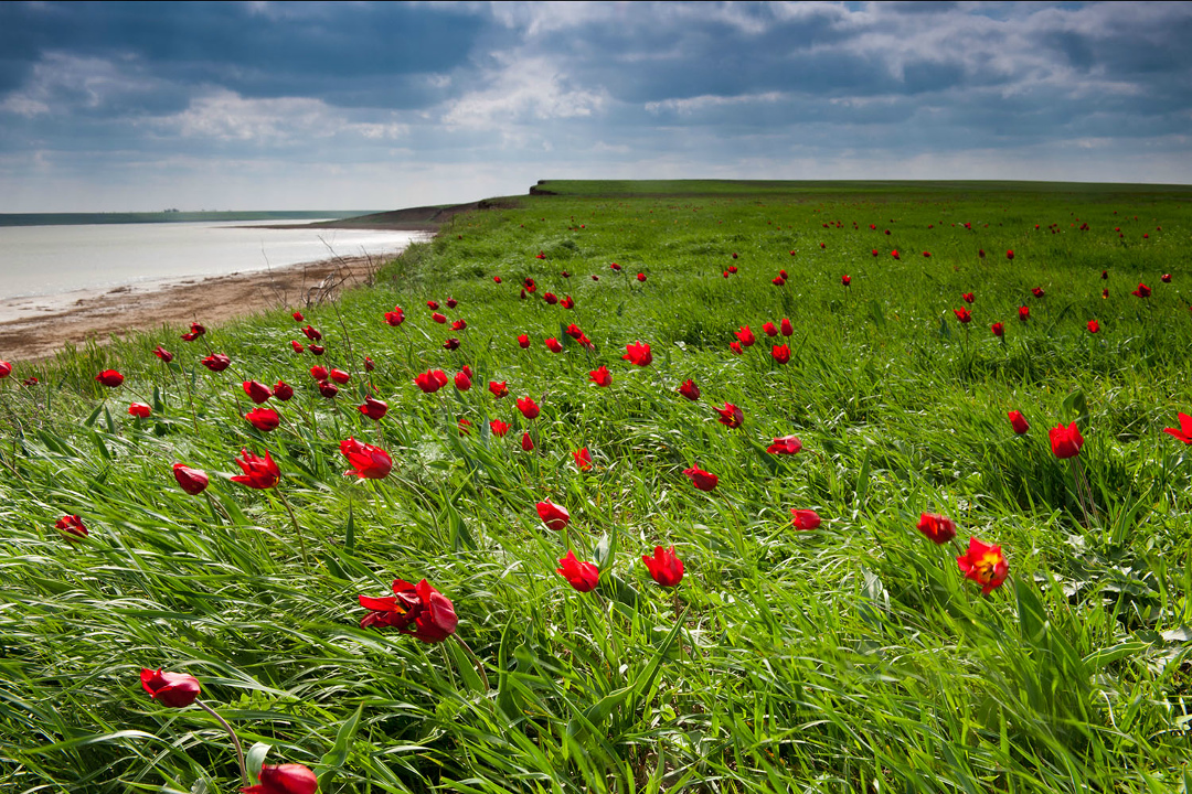С утра пораньше, позавтракав, мы садимся в наш комфортабельный минивэн и отправляемся в Калмыкию, в заповедник Черные Земли. Заповедник носит такое название отнюдь не из-за цвета своих земель, а в связи с тем, что зимой степь здесь практически не покрывается снегом и остается темным пятном среди заснеженных равнин Северо-Западного Прикаспия. Мы с вами едем на полуостров Тюльпаний, который начиная с середины апреля сплошь покрывается дикими цветущими тюльпанами!