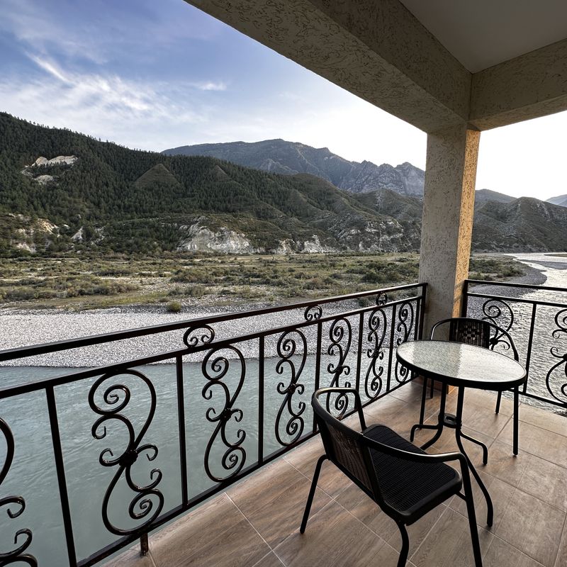 Встречи и начало тура. Встречаемся в аэропорту Махачкалы ровно в 11:00 утра. Если вы прилетели за день до начала тура, то в пределах города Махачкалы или Каспийска наш гид заберёт вас. После того как вся группа соберется, мы отправимся навстречу увлекательным историям, яркой культуре и захватывающим достопримечательностям Дагестана. А первой локацией будет вкусный обед с живописным видом на место слияния двух рек: Аварского Койсу и Кара-Койсу. Эти два потока, протекающие рядом друг с другом, образуют контраст, превращающийся в подлинное чудо природы. Аварское Койсу - светлая, чистая и прозрачная река, отражающая солнечные лучи. Кара-Койсу- тёмная, грязноватая и мутная.