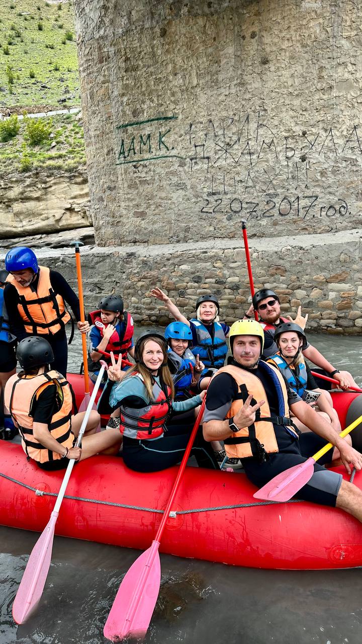 На точке старта вам проведут детальный инструктаж, много раз рассмешат чисто дагестанскими шутками, чтобы вы отправились в путь максимально заряженные, рассадят по местам в рафт и запустят в быстрое течение реки Аварское Койсу, естественно вместе с инструктором.