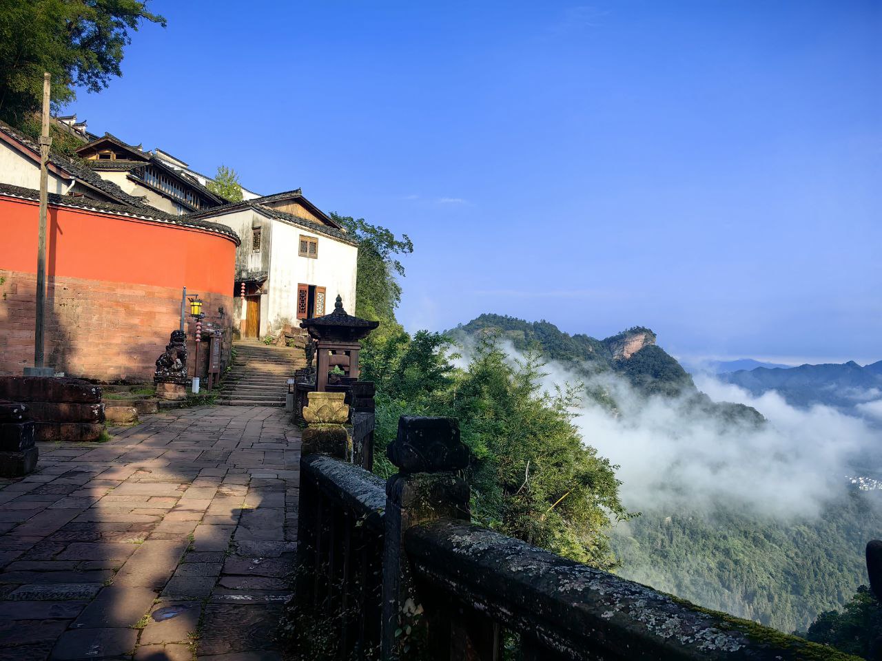17:30 Врата традиции открываются. Наше первое погружение — посещение Резиденции Небесных Наставников, духовного и административного сердца школы Чжэнъи, и древнего храма Шанцин.
