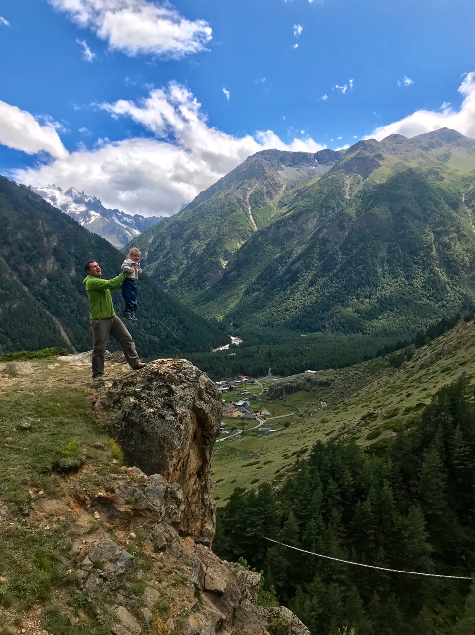 Если у Вас есть сильный родитель, который может взять ребенка на шею или в рюкзак-переноску - это тоже отличный вариант.