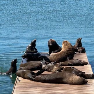 А на закате особенный момент: мы выходим в океан на sunset-круиз на лодке - игристое, ветер, огни города, встреча с морскими котиками и первый африканский закат с воды.