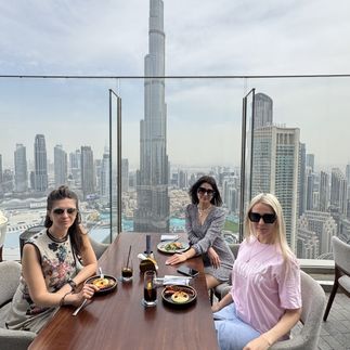 Вечером нас ждет вкусный Гала-ужин с потрясающим видом на Бурж Халифу и шоу фонтанов, где мы подведем итоги нашего замечательного девичника.