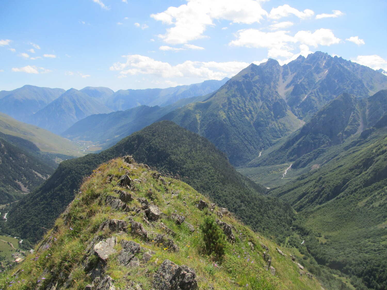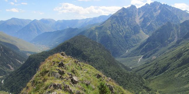 Нас ждёт выход налегке к верховьям реки Харес. По пути нам встретятся гигантские камни, оставшиеся после мощного землетрясения, один даже похож на львиную голову. Насладимся потрясающими пейзажами Главного Кавказского хребта и красивейшей горы Лабода. В дороге нам встретятся альпийские луга с многообразием пряных трав и ароматных цветов.