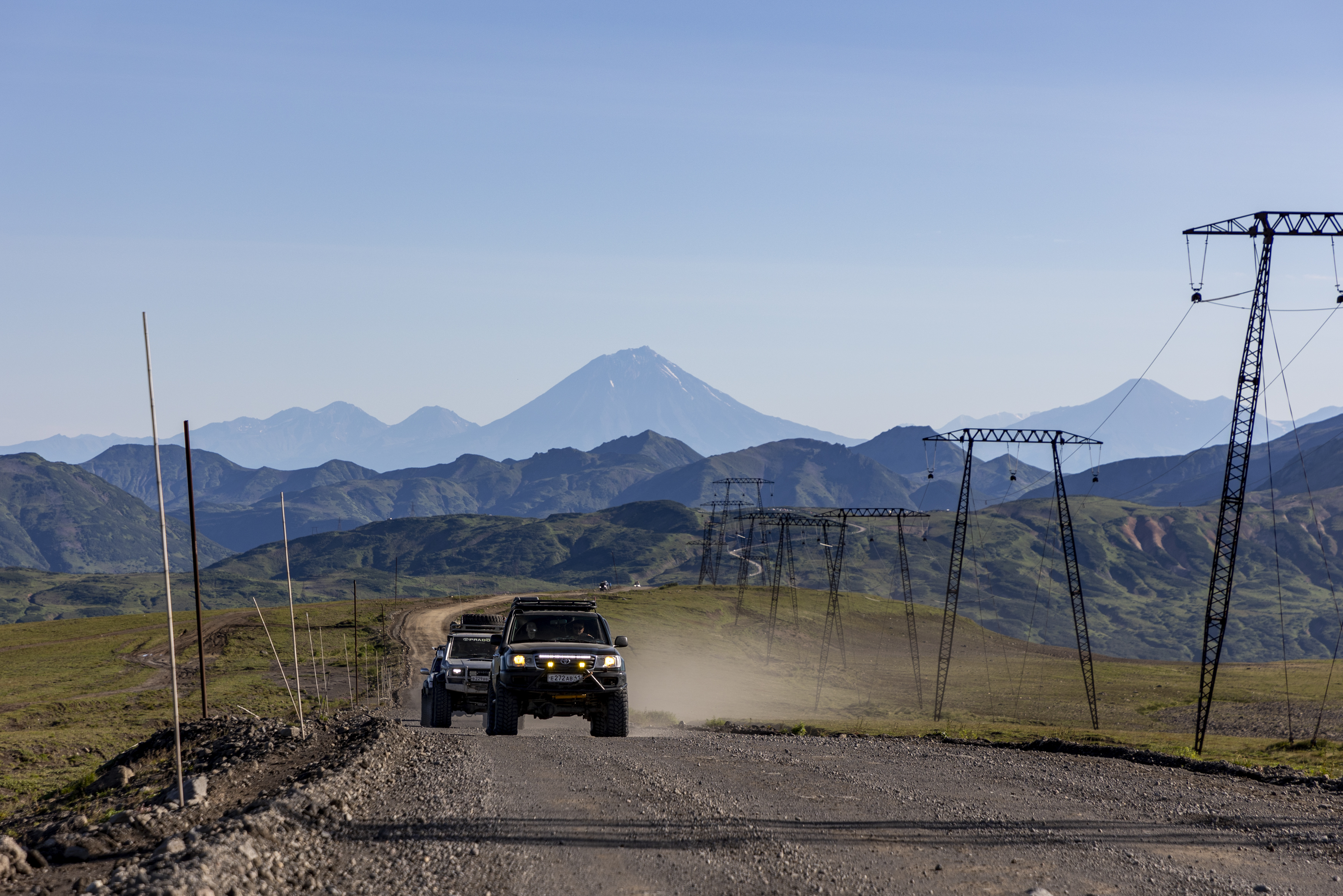 Заезд к памятнику Здесь начинается Россия, откуда в хорошую погоду открывается вид на сразу пять вулканов Корякско-Авачинской группы. Далее заезд в магазин и на рыбный рынок в городе Елизово (гости смогут приобрести то, что не входит в меню на маршруте, в том числе, алкогольные напитки). Сегодня нам предстоит переезд в село Эссо 525 км, где мы остановимся на ночь. Из них 300 км по асфальтовой дороге до села Мильково, где мы остановимся на обед. Также в пути мы сделаем остановку в поселке Сокоч, славящемся своими пирожками. Далее 225 км по гравийной дороге. Прибытие и размещение в отеле в селе Эссо с термальным бассейном. Ужин.