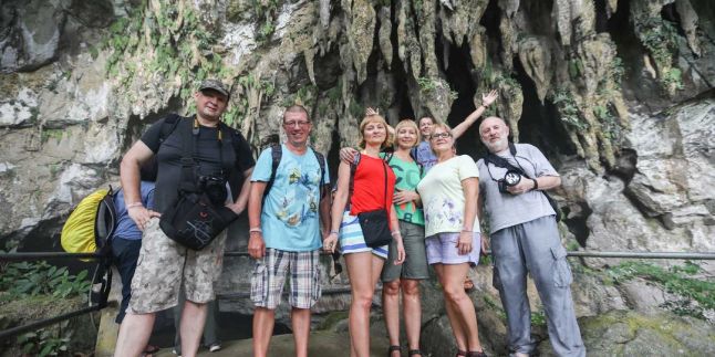 После завтрака отправимся в следующий треккинг по национальному парку «Гунунг Мулу». Маршрут на сегодня всего на 4 часа туда-обратно. Сначала прокатимся на длинной традиционной лодке. По пути сделаем остановку в поселении, где есть аутентичный рынок. Выйдем на берег и заглянем в Пещеру ветров. Затем прогуляемся до ещё одной, название которой означает «чистая вода». Перед подъёмом желающие смогут искупаться в реке. А далее наберём 200 метров высоты по ступеням до грота. Всего пройдём 1,5 км туда-обратно.