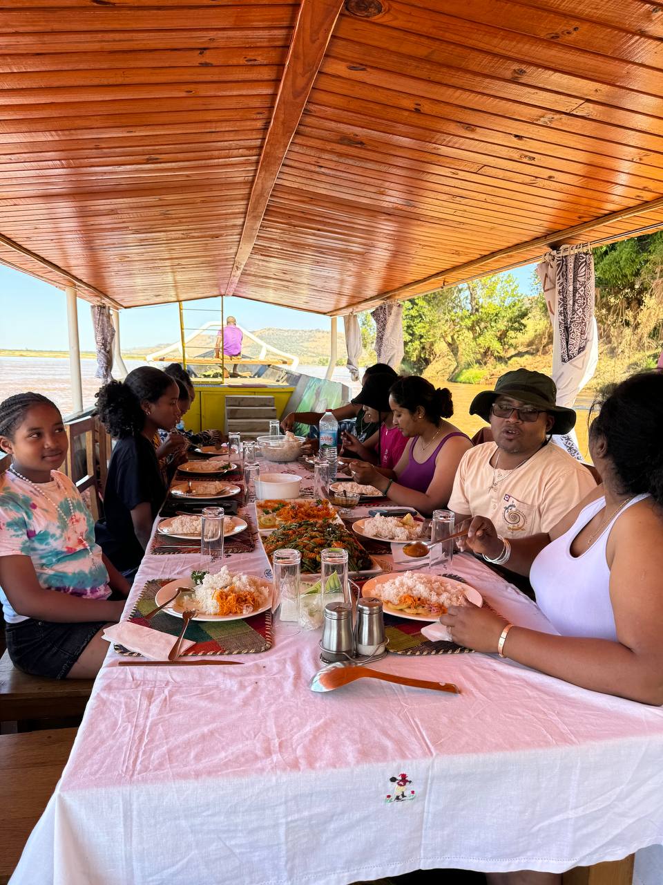 Путешествие начинается с реки Цирибихина — там, где время будто остановилось. Вы отправитесь в путь на барже, неторопливо скользящей по тёплым водам под песню тропических птиц. На борту вас ждёт простое, но невероятно душевное гостеприимство: девушки-кухарки готовят вкуснейшие мадагаскарские блюда прямо на барже, заботятся обо всём и создают атмосферу, будто вы дома — только посреди реки и неба.