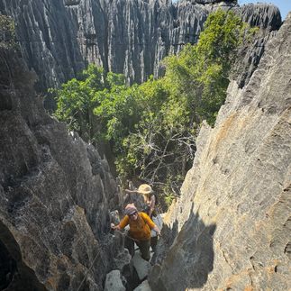 Далее — путь в сторону великого чуда Мадагаскара — Цинги де Бемараха, каменные леса и каньоны, признанные Юнеско. Это место, где земля превращается в скульптуру, а каждый шаг открывает новую тайну. Висячие мосты, ущелья, древние формы — всё это завораживает и заставляет почувствовать дыхание самой планеты.