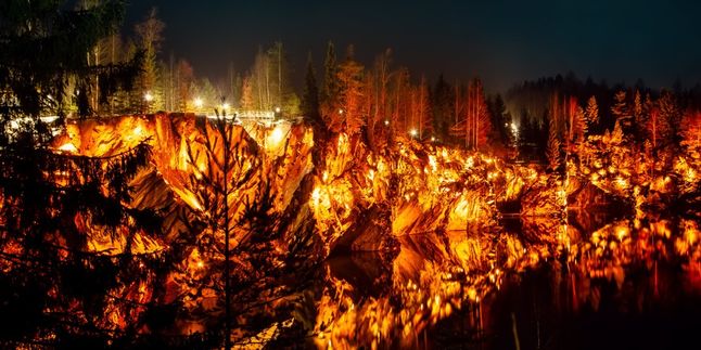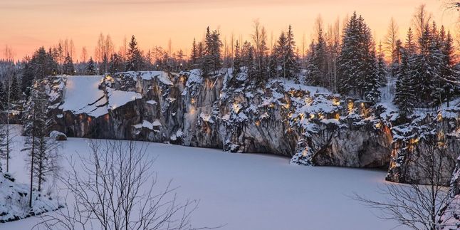 К 14:00 прибудем в парк. Вас ждёт часовая экскурсия по мраморному каньону. Затем — свободное время (2,5 часа). Вы можете погулять по экотропе длиной в 1,5 км и сделать красивые кадры с панорамных площадок. Можно зайти в пещеры и осмотреть залежи итальянского мрамора. В парке есть и другие развлечения: зиплайн, катание в конном экипаже и экскурсия «Подземная Рускеала». А ещё можно заглянуть в знаменитый ретропоезд и сфотографироваться в интерьерах 19 века.