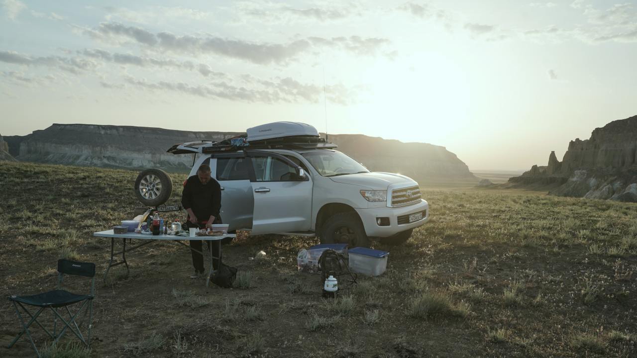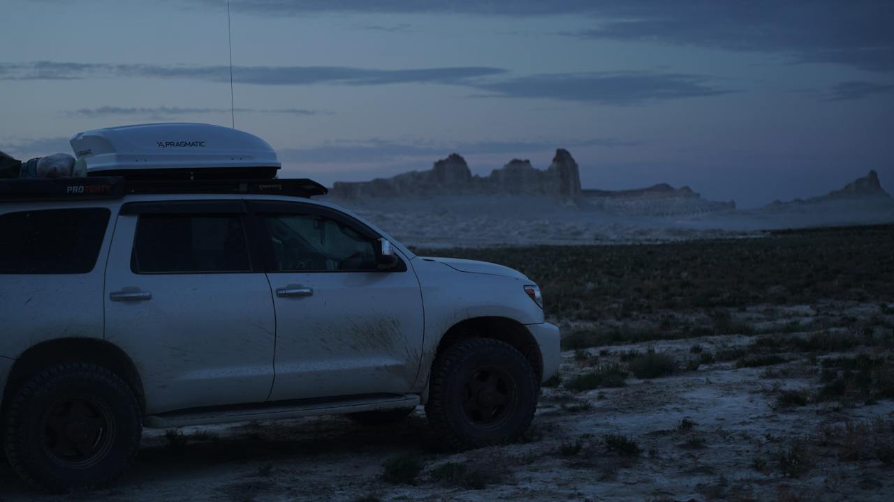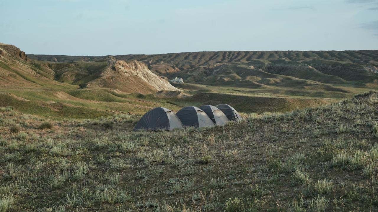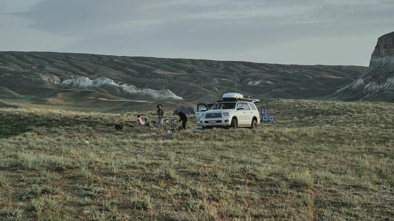 Утром выезжаем к Каньону Тамшалы а после обеда отправимся к берегу Каспийского моря и установим лагерь на косе, где будет встречать закат.