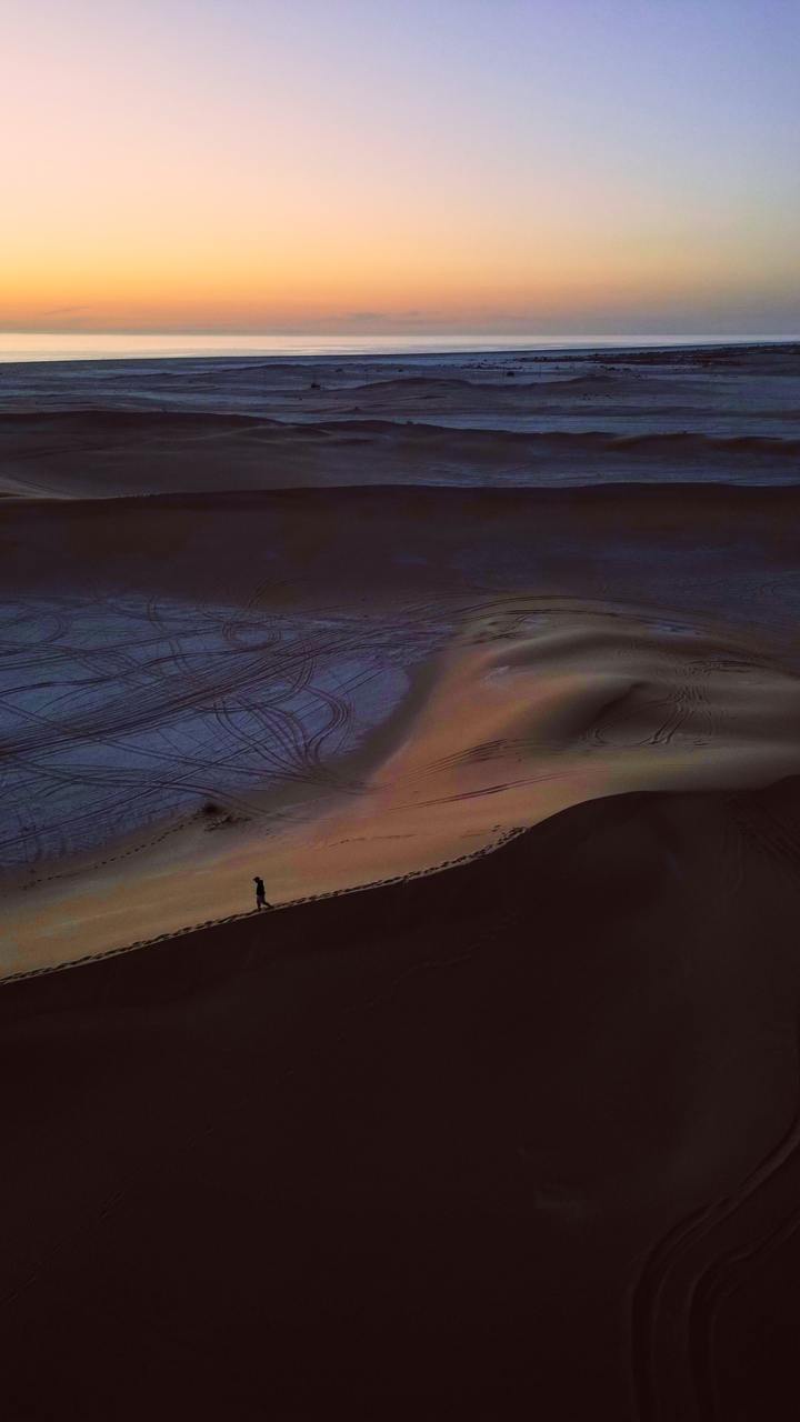 Встречаем рассвет с видом на барханы, завтракаем и отправляемся в сторону аэропорта.