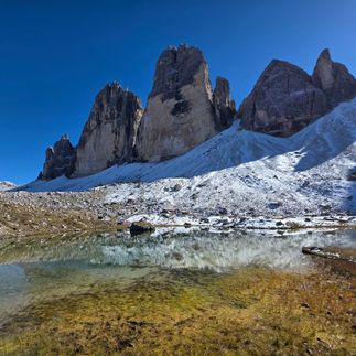 Одна из визитных карточек Доломитовых Альп - Tre Cime - три прекрасные вершины, возле которых находится один из самых известных и видовых пешеходных маршрутов. За 4 часа мы обойдем Тре Чиме по круговому треку, увидим бункеры 1й мировой войны, несколько моренных озер, в которых красиво отражаются все три вершины.