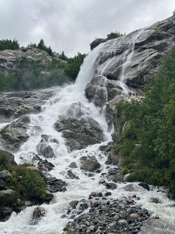 После спуска отправляемся в сторону водопадов, берущим начало из ледника Птыш: альпийские луга и горные первоцветы, а еще, если повезет - горные козлики - туры.