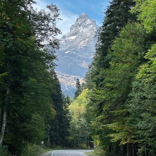 На подъезде к поселку нас ждет одна из красивейших дорог Северного Кавказа: серпантин с видом на гору Белалакая. Ее называют Кавказский Маттерхорн из-за похожих очертаний на самую знаменитую вершину Швейцарии.