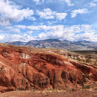 После обеда прогуляемся по Чуйской степи возле села Чаган-Узун. Здесь можно увидеть потрясающие горы причудливых цветов, напоминающие пейзажи Марса. Этот эффект происходит из-за взаимодействия различных минералов.
