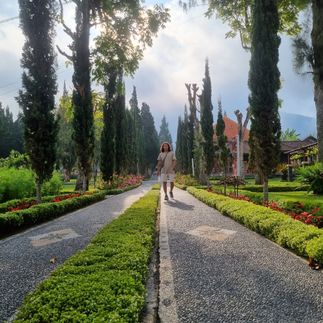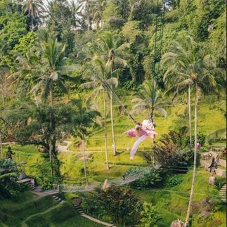 Сначала мы посетим ландшафтный парк с эффектными локациями. Здесь можно арендовать летящее платье, взмыть на гигантских качелях над рисовыми террасами, сделать атмосферные кадры на фоне джунглей.