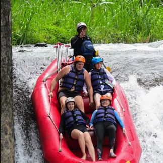 Далее — рафтинг по одной из самых живописных рек Бали: тут джунгли, рисовые террасы, водопады и чистейшая вода. Добавим немного азарта и прокачаем командный дух — победит первый дошедший до финиша. Вечером восстановим силы в отеле.