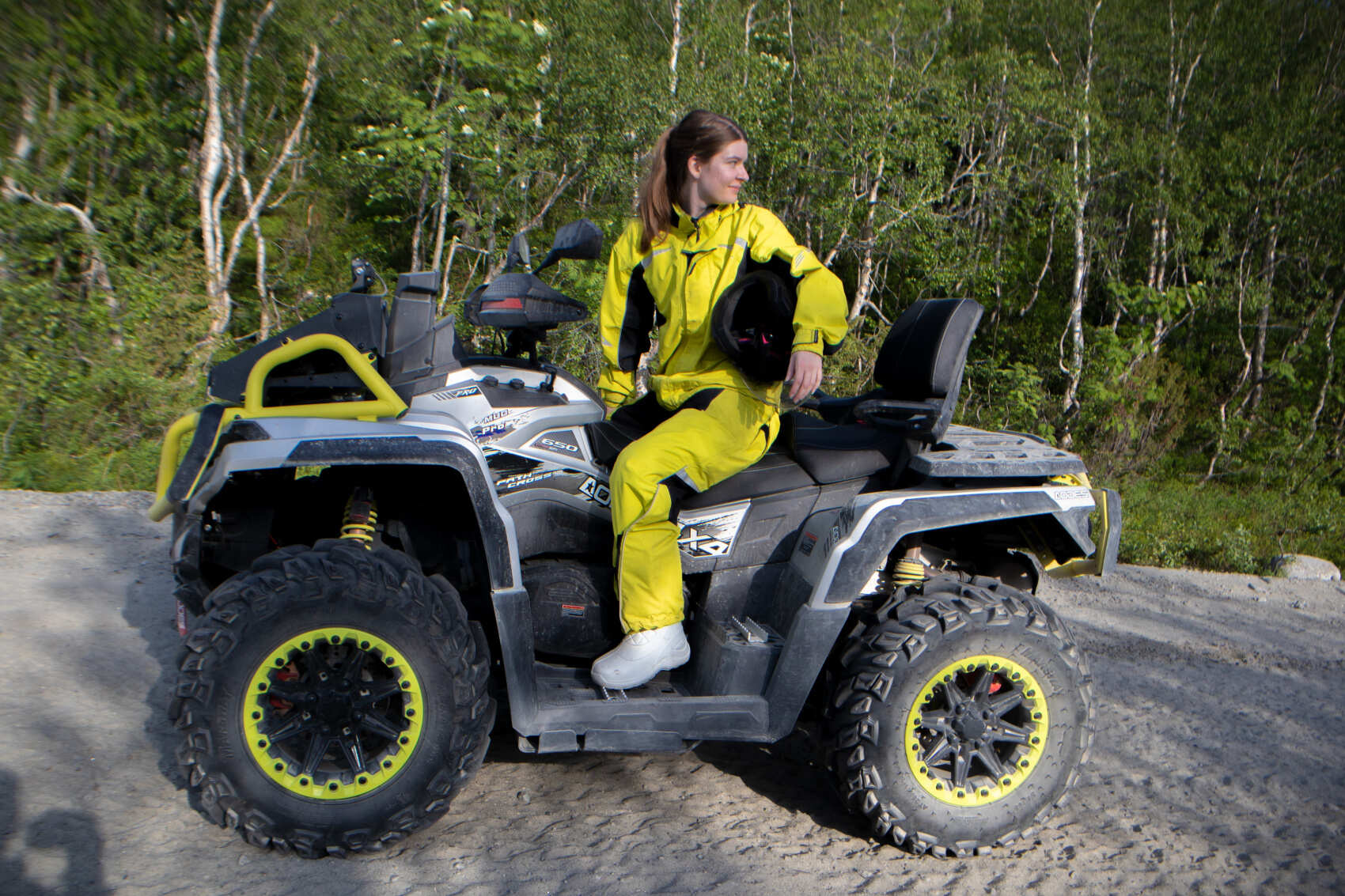 Далее нас ждёт трансфер к стартовой точке квадротура. На месте проведём обязательный инструктаж: разберём правила безопасности и основы управления ATV‑техникой. На квадроцикле едут 2 человека, если вы хотите ехать в одиночку – запрашивайте условия.