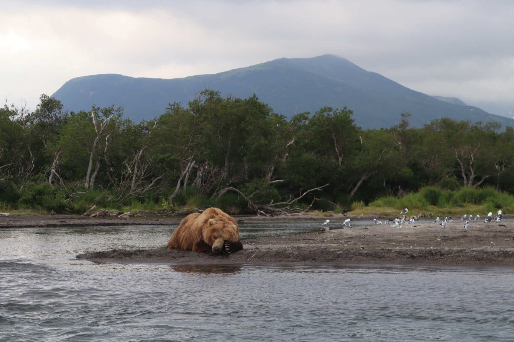 Курильское озеро — самое медвежье место не только на Камчатке, но и в России. Дело в том, что сюда на нерест заходят стада лосося, за которыми подтягиваются толпы медведей. Здесь можно наблюдать за жизнью этих удивительных животных с расстояния всего в несколько метров.
