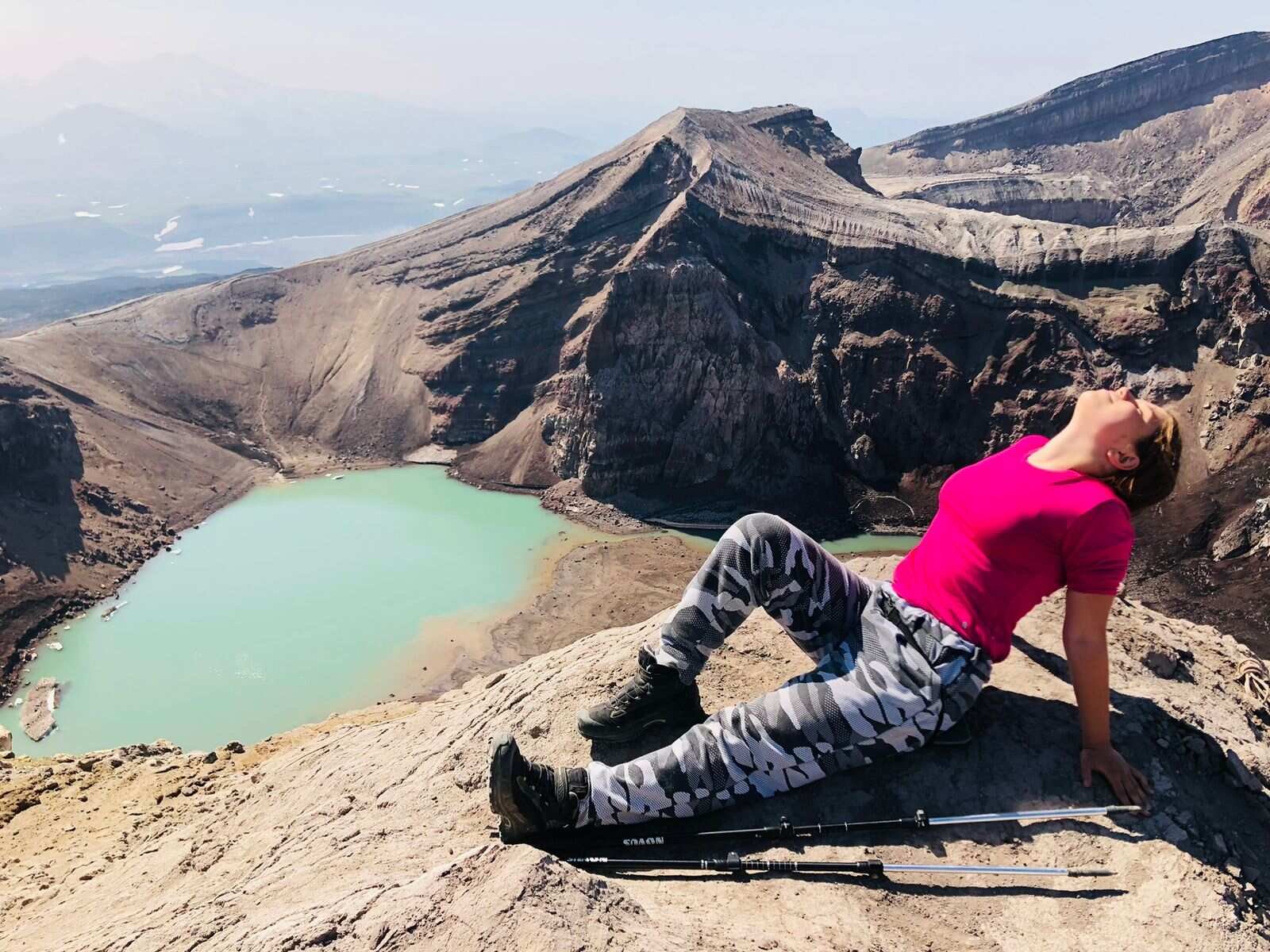 Шаг за шагом мы поднимаемся, и вот — вершина! Если погода благоволит, перед нами открываются озёра небесно‑голубого цвета, спрятанные в кратерах. Их вода кажется неземной — настолько она яркая и чистая. Это зрелище стоит всех усилий!