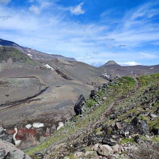 Выезжаем к Вилючинскому перевалу. Далее отправимся к Дачным источникам, которые находятся недалеко от Мутновского вулкана и совсем рядом с Мутновской геотермальной станцией. Мы окажемся в месте, похожем на знаменитую Долину Гейзеров. Вы увидите парящие фумаролы, почувствуете, как Земля дышит, бурлит, парит. Отсюда нам откроются живописные панорамные виды на вулканы, луга и снежники.