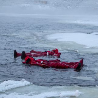 Это невероятная возможность насладиться купанием в ледяной воде, оставаясь при этом в полной безопасности! Купаемся в специальном спасательном костюме, который полностью покрывает тело и обеспечивает надежную защиту от холода.