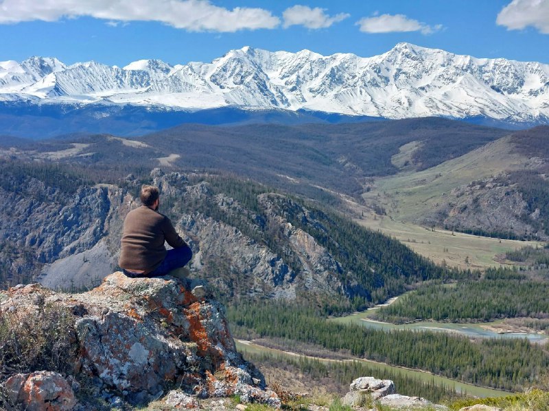 Представьте: вы стоите на смотровой площадке, и перед вами открывается грандиозная панорама. Величественные ледники Северо-Чуйского хребта сверкают, словно россыпь бриллиантов под лучами солнца. Внизу раскинулась бескрайняя Курайская степь, а по её просторам извиваются серебряные ленты рек Чуя и Мажой. В ясные дни вашему взору предстаёт настоящая королева этих мест — величественная гора Белуха, чей пик взмывает ввысь на 4509 метров, демонстрируя всю мощь и величие сибирской природы.