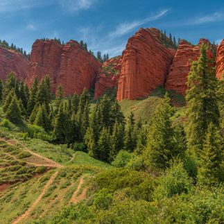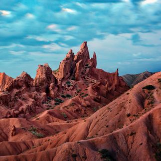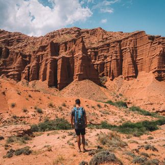 Каньон Конорчек. Удивительные ландшафты каньонов Конорчек напоминают Великий Каньон, но вместе с тем, они несут в себе значимую частицу уникальной природы Кыргызстана. Это сказочное место находится в 125 км от столицы, в Боомском ущелье. Пройти к Каньонам можно только через лабиринты скал по руслу высохшей реки. Скалистые колонны из красного песчаника простираются на многие километры.