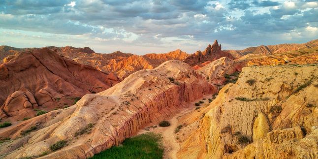 - Каньон Сказка. Состоящий из песка и глины красного цвета, каньон формировался миллионы лет под воздействием геологических процессов, воды и ветра. Силы природных стихий рисовали на склонах причудливые узоры, лепили из красных скал волшебные скульптуры. Название Сказка эта удивительная достопримечательность получила потому, что если бродить по многочисленным лабиринтам каньона, дно которого усыпано кустами эфедры, воображение начинает рисовать на его рельефах сказочные образы фантастических животных и чудовищ, замков, башен, лица людей. В солнечную погоду это место производит особенное впечатление, так как красный цвет начинает переливаться различными оттенками. Тогда начинает казаться, что находишься в чудесной стране, которая открывает все новые красоты. В дождливую погоду или во время сильных ветров заметно меняется рельеф каньона, и, придя сюда снова, можно увидеть совсем другие образы и фигуры.