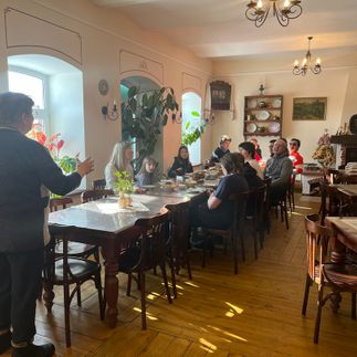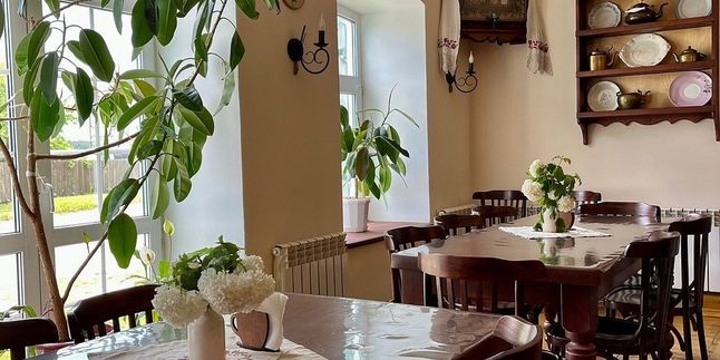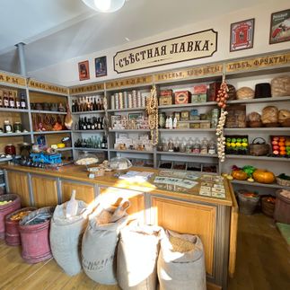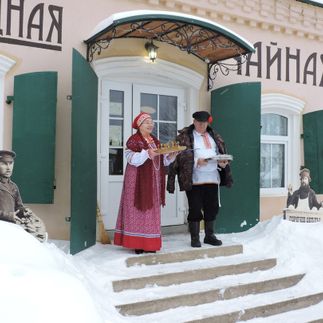 Ближе к обеду посетим чайную, отведаем чая с пирогами и насладимся атмосферой старины. Здесь есть камин, патефон, гармонь, гусли и другие интересные старинные вещи. Также нас ждёт сытный деревенский обед.