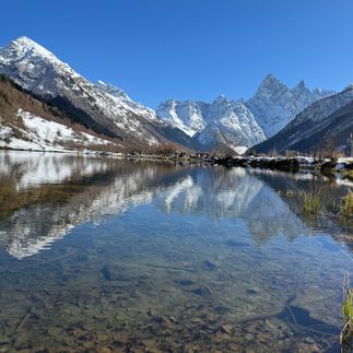 После обеда мы отправимся на автомобиле на прогулка в Гоначхирское ущелью. Нас ждет пешая прогулка вдоль реки Гоначхир, тенистые хвойные рощи, кристально чистые ручьи и водопады, панорамные точки на скальные стены ущелья. Да, и во времена Ссср через Гоначхирское ущелье проходил всесоюзный туристический маршрут 43. Этот маршрут был одним из самых популярных на Кавказе и считался советской легендой. Его особенностью было то, что он соединял горные вершины с Чёрным морем, позволяя туристам пройти от гор к морю. Изюминкой этого места является Туманлы-Кёль, в отражении которого отражаются горы.