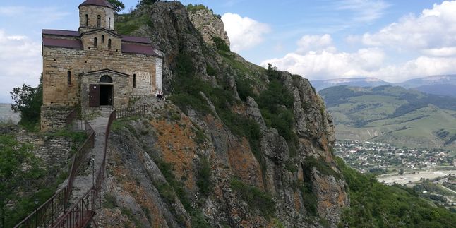 Остановка у Шоанинского храма. Христианский собор, относящийся к исторической Аланской епархии, возведённый в конце X — начале Xi века. Расположен на территории современной Карачаево-Черкесии, на юго-восточном отроге горы Шоана (карач.-балк. Чуана), на левом берегу реки Кубань, недалеко от её слияния с Тебердой. Панорамные виды: С площадки храма открывается захватывающая панорама на долину реки Кубань и горные хребты. Традиция: можно загадать желание, ударив в колокол, установленный в беседке рядом с храмом.
